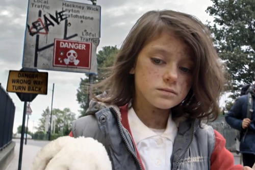 A young girl is shown in close-up blowing out candles on a birthday cake, playing dress-up and asleep peacefully in a car. Then the images become darker, showing disruption, chaos, bombs and panic as Britain descends into a Syria-type conflict and the girl and her family are forced to flee their home in fear. The images are from a startling new Save The Children campaign that imagines what London would be like if plunged into a conflict similar to that in Syria.