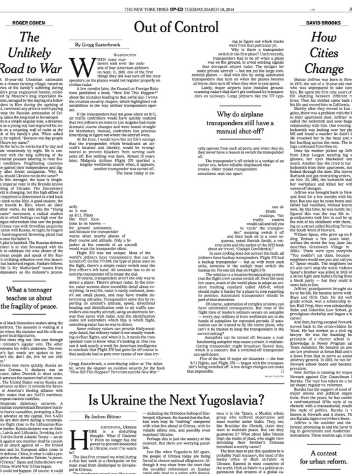 Design Brilliant typography in The New York Times By Admin on March 19, 2014 • ( Leave a comment ) Graphic work like this could actually make people read paper newspapers again. Well played, NYT! [via Filip Rasmussen on Google+] Please be social: Click to share on Flattr (Opens in new window) Flattr Click to share on Facebook (Opens in new window) Facebook Click to share on X (Opens in new window) X Click to share on Pinterest (Opens in new window) Pinterest Click to share on LinkedIn (Opens in new window) LinkedIn Click to share on Tumblr (Opens in new window) Tumblr Click to share on Reddit (Opens in new window) Reddit Like Loading... Related Categories: Design Tagged as: Design, MH370, The New York Times, Typography