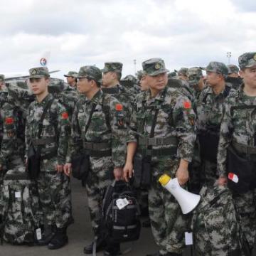 Chinese military health workers, part of a delegation sent by China to help in the fight against Ebola, arrive at Roberts airport outside Monrovia November 15, 2014. REUTERS/James Giahyue